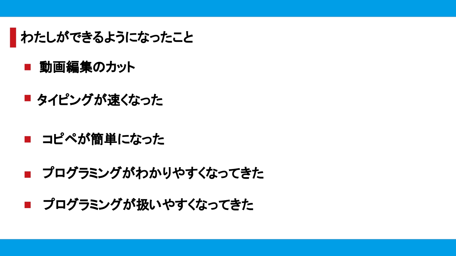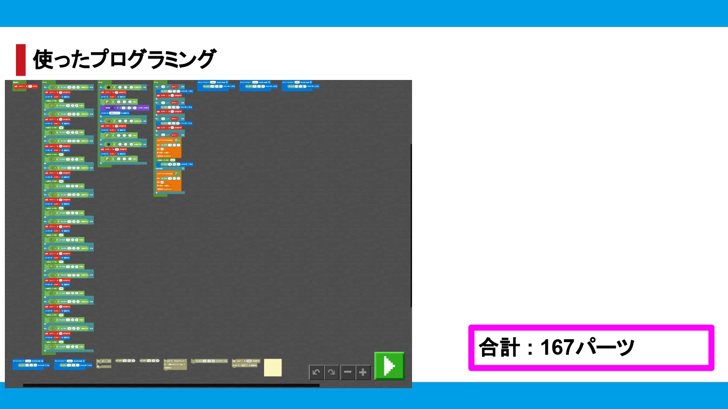 作品をつくるのは、最初は経験0でどんな難しいものなんだろうと思っていたけれど、動画編集や、作品作りを始めるにつれてとても楽しくてかんたんとわかってプログラミングはかんたんなんだとわかりました。