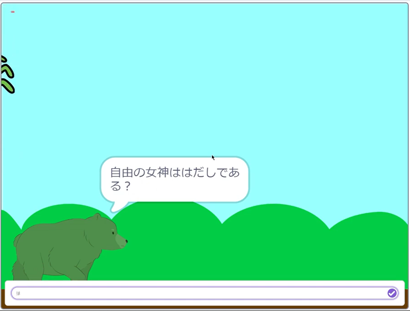 主人公はクイズを出すことができ、紫色にふれると色が変わるようなとくちょうがあります。