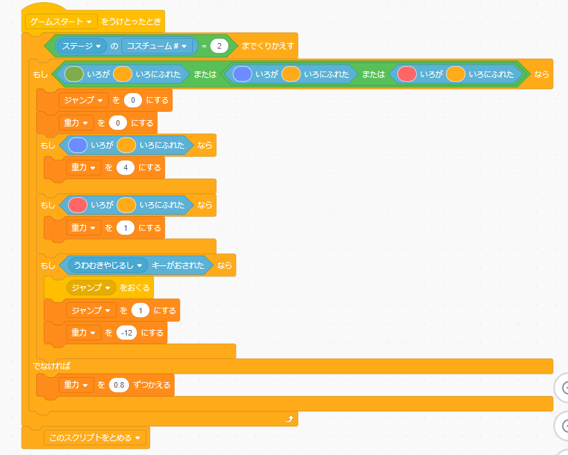 一番こだわったプログラムはたかしにジャンプをさせるプログラムです。
